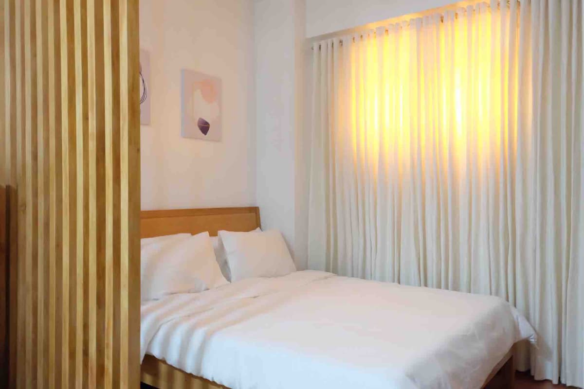 Stay in a bright, comfortable room with natural light and neighborhood views. Relax with full-size bed comfort, a compact kitchen for light meals, and entertainment via smart TV with Netflix. Located near SM Clark, Clark Global City, and nightlife. Weekly cleaning included. Parking onsite. Ideal for solo travelers or couples exploring the area.
