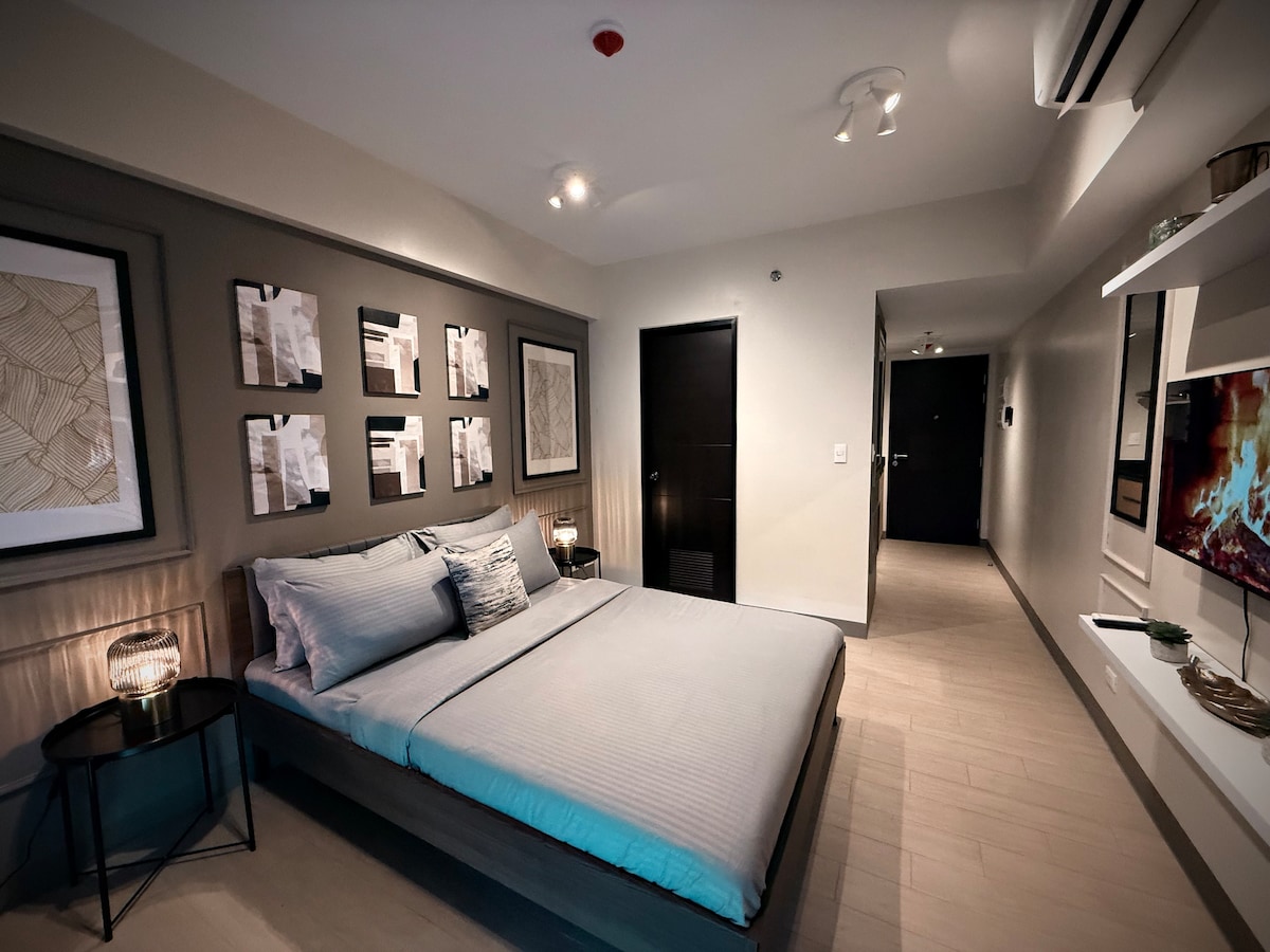 Welcome to The Meydan Suites at Azure North, a Japandi-inspired studio retreat in San Fernando, Pampanga. Just 1.5 hours from Manila, our spacious 2-bed studio comes with a full kitchen, one bath, and a private balcony on the quiet side of Azure. For ₱200 per guest per shift, you can enjoy resort-style amenities including the wave pool, the beach pool, and leisure facilities. It is the perfect sulit escape for couples, families, or barkada.