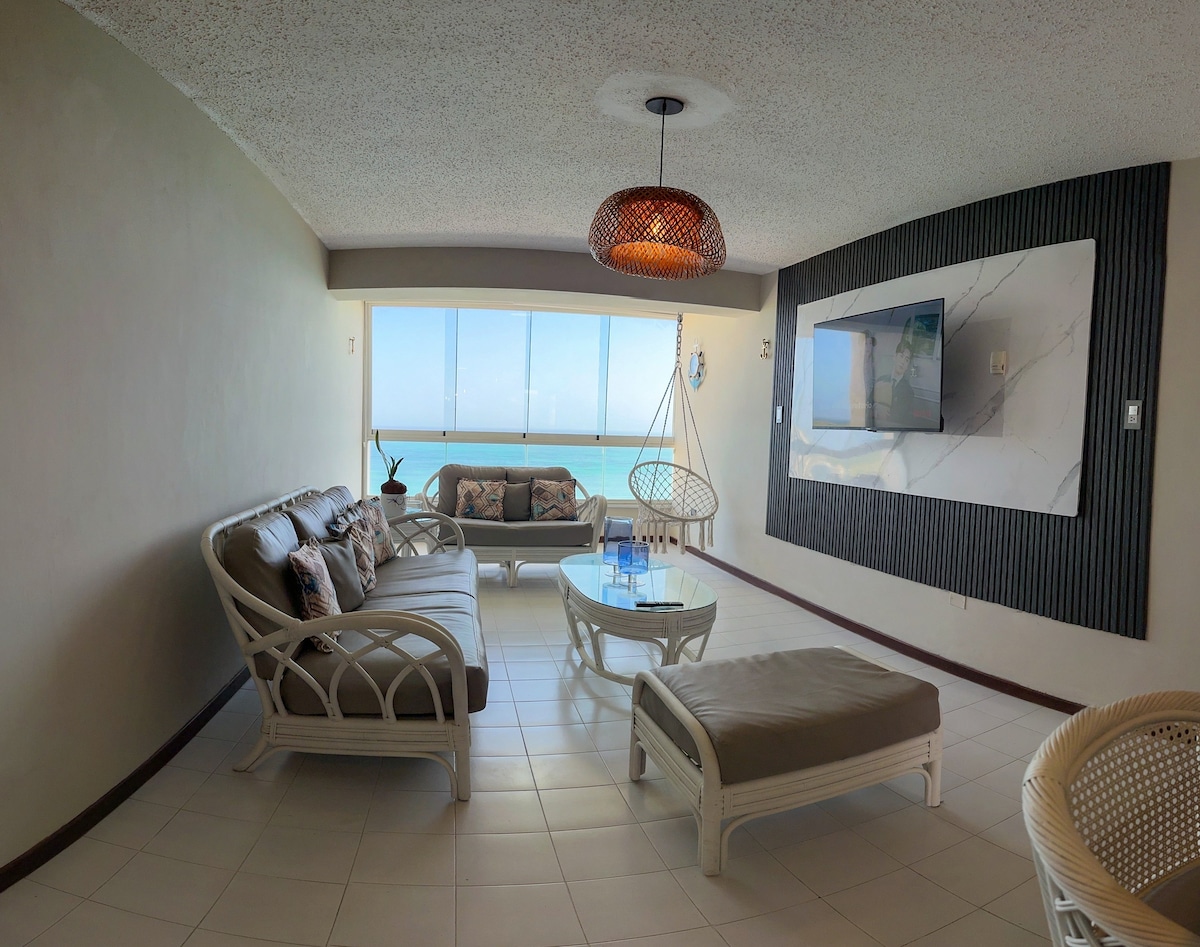 El Espacio: 🏘️ Dos habitaciones - Hab. Principal cuenta con Cama Queen, baño, balcon y vestier - Hab. Secundaria cuenta con dos camas individuales, baño completo fuera de la habitación 🏘️ Cocina completamente equipada 🏘️ Balcon con vista al mar 🏘️ TV Smart de 75” con Directv, Netflix 🏘️ Wifi Satelital 🏘️ Lavadora y Secadora 🏘️ Aire acondicionado tipo Split independientes en toda la propiedad 🏘️ Tanque de 1.100L de agua el cual se recarga automáticamente lo que te permitira tener agua constante
