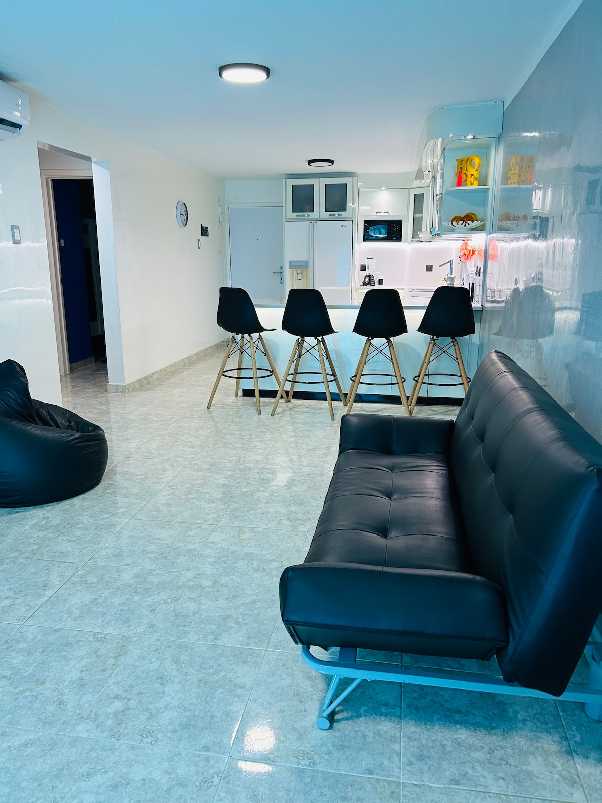 Nuevo y totalmente equipado apto con una cama king. Cerca de la playa y centros comerciales, restaurantes, casinos, farmacias y supermercados. Perfecto para quienes buscan recargar energías después de explorar los tesoros de Mgta, pero también para los viajeros de negocios que buscan un buen descanso nocturno. Con bellas áreas sociales, piscina, parque infantil, area de parrillera, vigilancia 24h, y estacionamiento. Excelente para una experiencia única