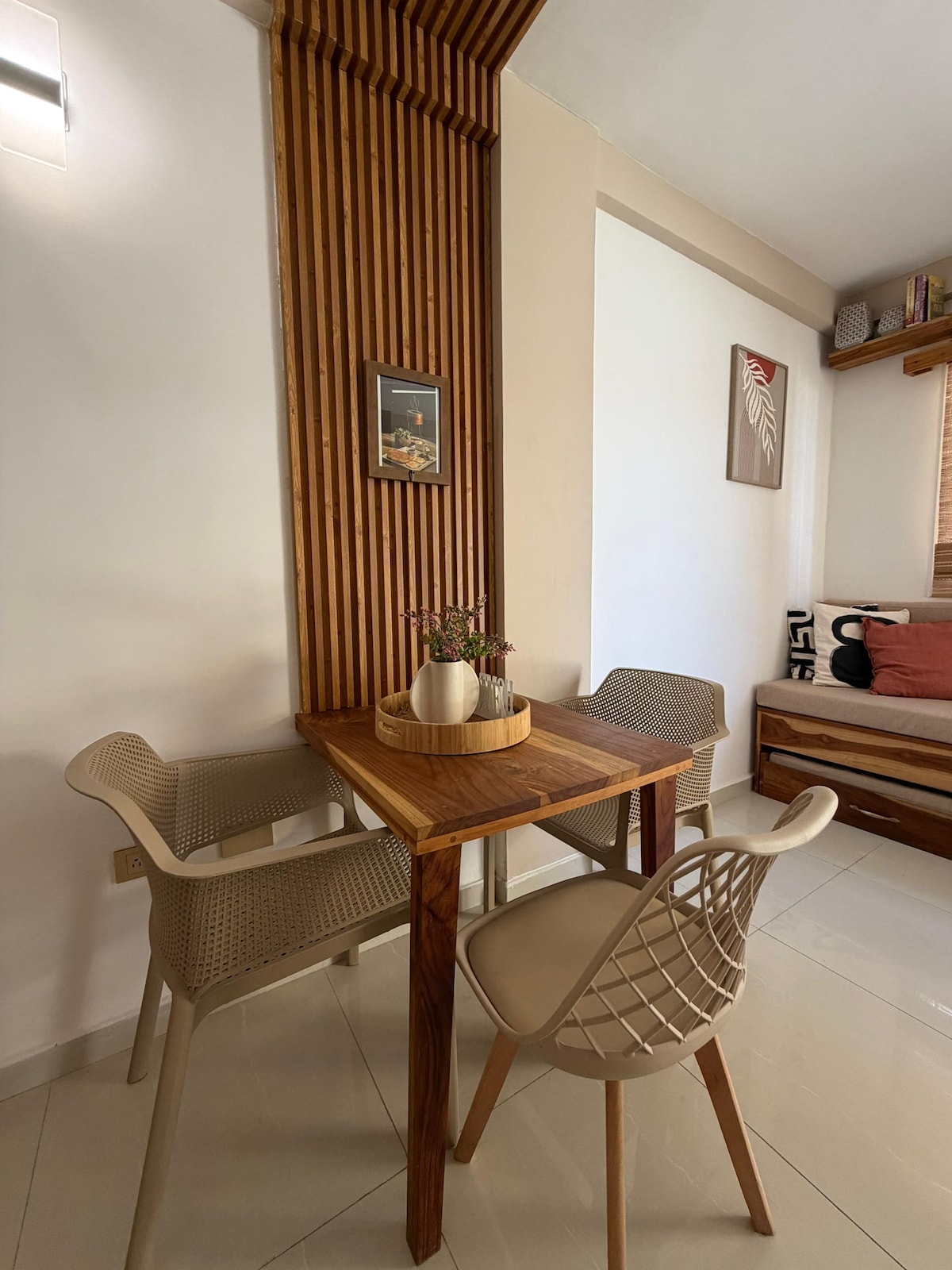 Cosy vintage studio by the beach. Wake up to ocean sunrises and start your seaside adventure. Walk👣 to: Bayside Beach🏖️ (3 mins) Casino🎰 (4 mins) La Vela Mall💱 (12 mins) By car🚙: Supermarket🛒 (4 mins) Sambil Mall💱 (8 mins) Beaches🏖️ (5–30 mins) Airport✈️ (30 mins) Includes: Wi-Fi🛜 optic fiber, 50” TV Streaming, coffee maker☕, kitchen, double bed + sofa, linens, towels, private water tank 1100L per each, private bathroom. Relax, enjoy, and explore.