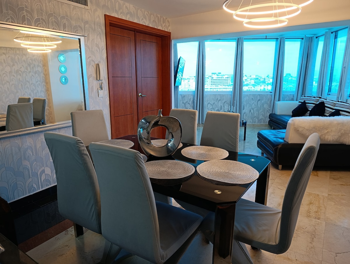 🌊🏝️👀EXPERIENCIA UNICA en un apartamento en el piso 14, con vistas panorámicas que te dejarán sin aliento. Ideal para hasta 4 huéspedes. Con una decoración exquisita que combina comodidad, sencillez y estilo. Cuenta con aire acondicionado, internet rápido y TV con acceso a canales y plataformas de streaming. Disfruta de dos baños completos con toallas limpias, sábanas frescas y agua caliente. dos tanques de agua s Impresionante vista, ubicación en primera fila de playa para un descanso perfecto.