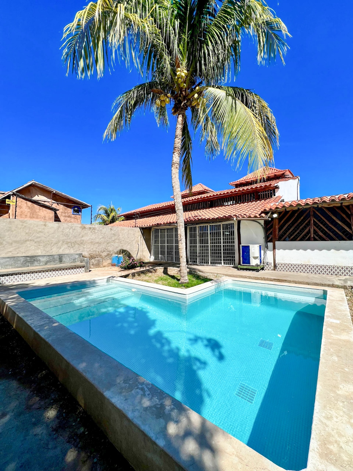 Very attractive and unique villa with 5 bedrooms, up to 12 persons. Pool with waterfall, private garden, library and more. Walking distance to the historic and charming town Pampatar and several beaches. PS: Most of the pictures are from september 2022. The house is newly renovated.