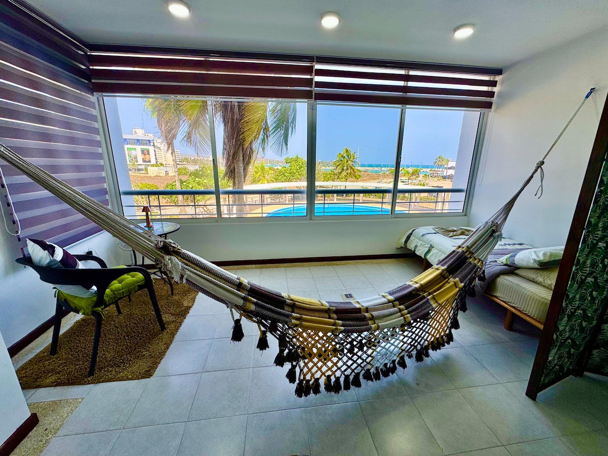 El Espacio: 🏘️ Dos habitaciones - Hab. Principal cuenta con Cama Queen, baño, balcon y vestier - Hab. Secundaria cuenta con dos camas individuales, baño completo fuera de la habitación 🏘️ Cocina completamente equipada 🏘️ Balcon con vista al mar 🏘️ TV Smart de 75” con Directv, Netflix 🏘️ Wifi Satelital 🏘️ Lavadora y Secadora 🏘️ Aire acondicionado tipo Split independientes en toda la propiedad 🏘️ Tanque de 1.100L de agua el cual se recarga automáticamente lo que te permitira tener agua constante