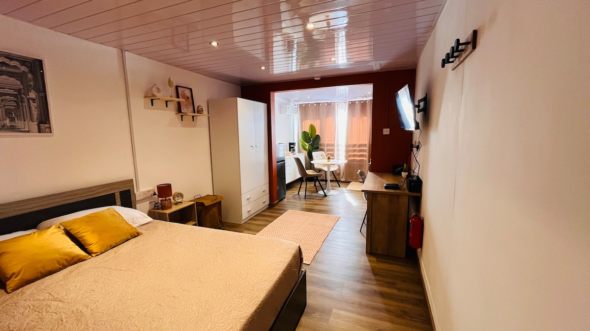 One bedroom apartment with ocean view, a living room with a sofabed and open kitchen, a bathroom and 60 sq meters of Terrace. Outdoor shower, rocking chair, 2 sunbeds, table for 4, in a seaside decoration, with an outstanding sunset every evening. Less than 5 min walking to the most beautiful beach of Mauritius, Trou aux Biches. A light cleaning will be done every 3 days except Sundays and public holidays. Shops and restaurants around.