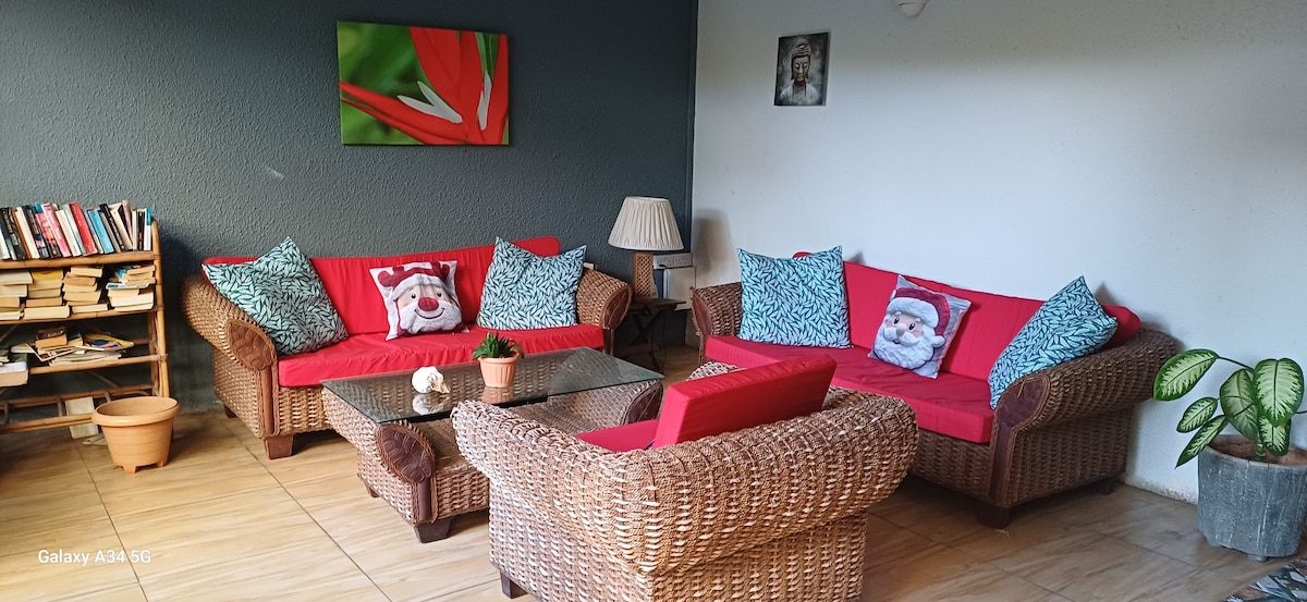 Stay in a sunny serene and tranquil place at walking distance to the beach. and restaurant.