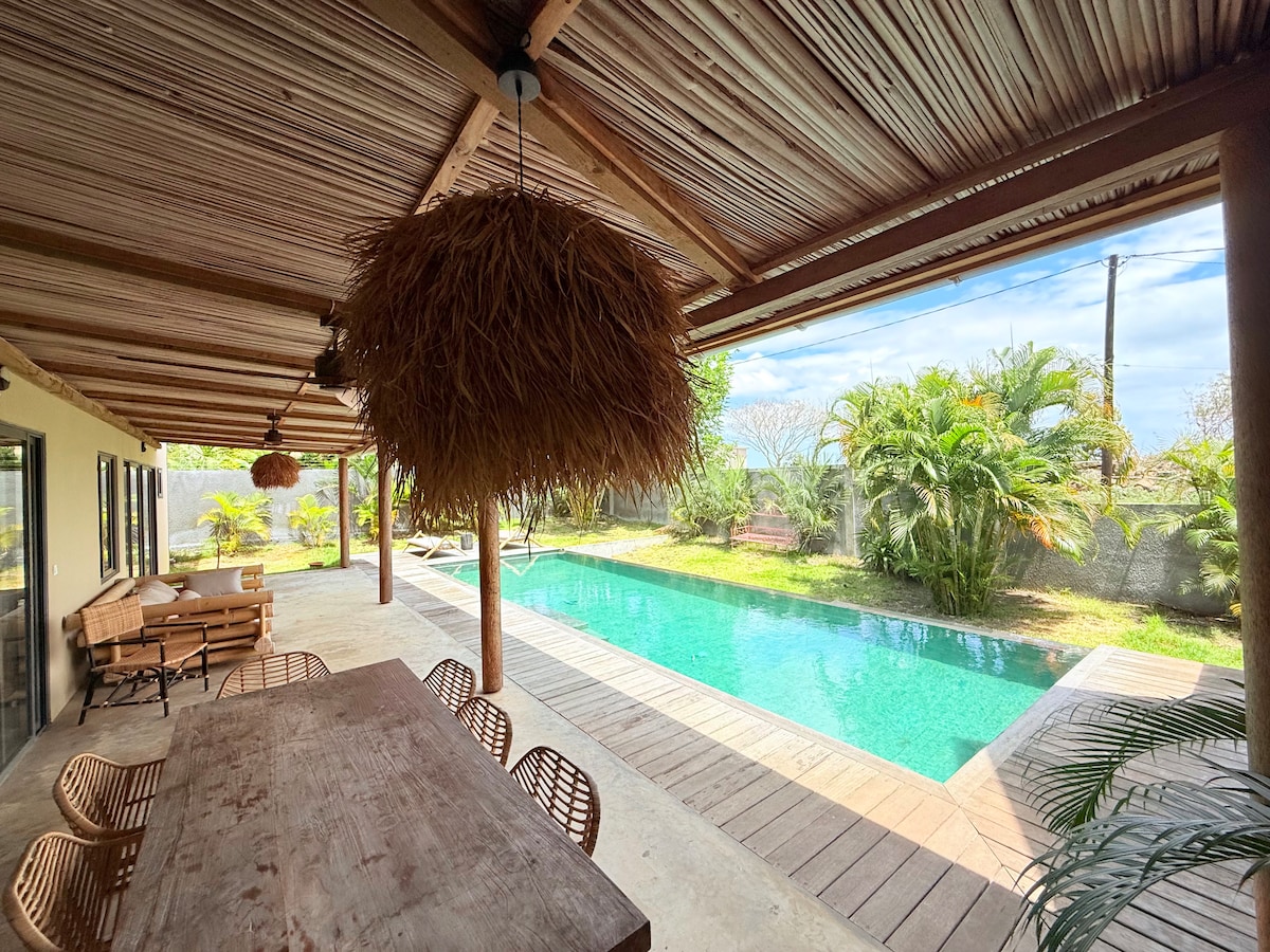 Bienvenue dans une élégante villa privée de 2 chambres située dans le nord de l'ile. Idéal pour des couples et petites familles. Spacieuse, meublée dans un style naturel et moderne offrant un maximum de confort : 2 grandes chambres climatisées, une salle d'eau, une cuisine ouverte toute équipée donnant accès au salon et à la piscine. Vous pourrez profiter d’un moment de détente et manger au bord de la piscine privée et aller à la plage à pieds. Villa sécurisée - parking privé - Wifi inclus.