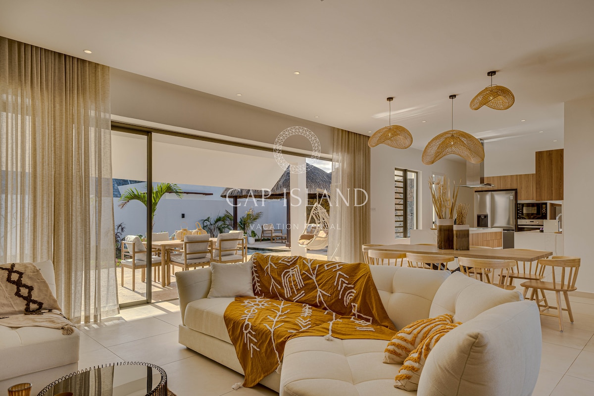 Villa neuve de 180m² avec piscine privée – 3 chambres, style bohème chic, à 5 min de la mer Villa moderne, neuve et décorée avec goût Plage de Pointe aux Piments à 5 minutes Trou aux Biches à 10 minutes / Mont Choisy à 12 minutes À 10 minutes de Grand Baie | Supermarchés Piscine privée Grand jardin Cuisine entièrement équipée Cafetière Nespresso Wi-Fi très haut débit Climatisation dans toutes les chambres 2 places de parking à l’intérieur de la propriété Portail électrique Disponible 24/24
