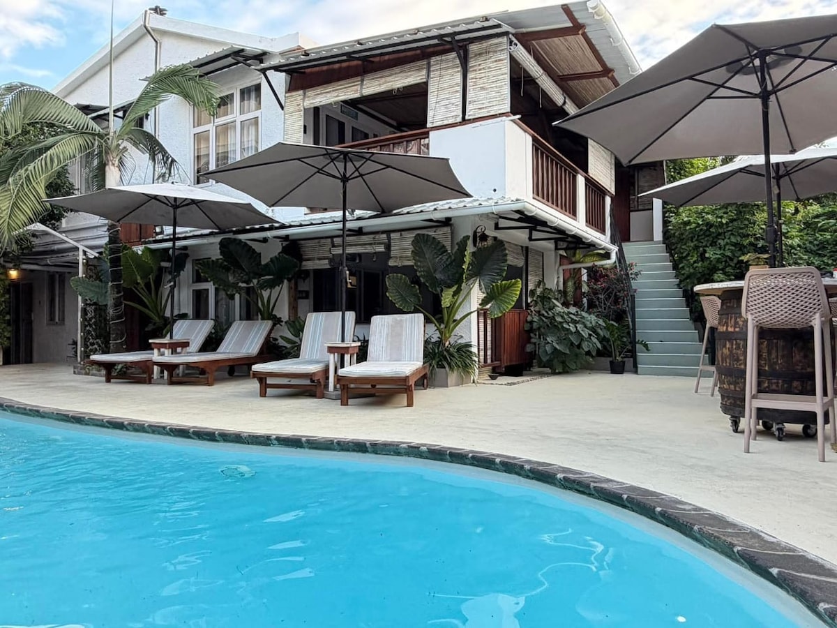 Only available to book on Airbnb. Discover our modern home from home, just a 10-min walk from Mont Choisy Beach and 20 mins from Trou-aux-Biches Beach. Our ground-floor haven features a Super King bed, L-shaped sofa bed, wet room, fully-equipped kitchen, 40" Smart TV, and high-speed WiFi. Enjoy a communal pool, private patio, and garden for a perfect holiday escape.