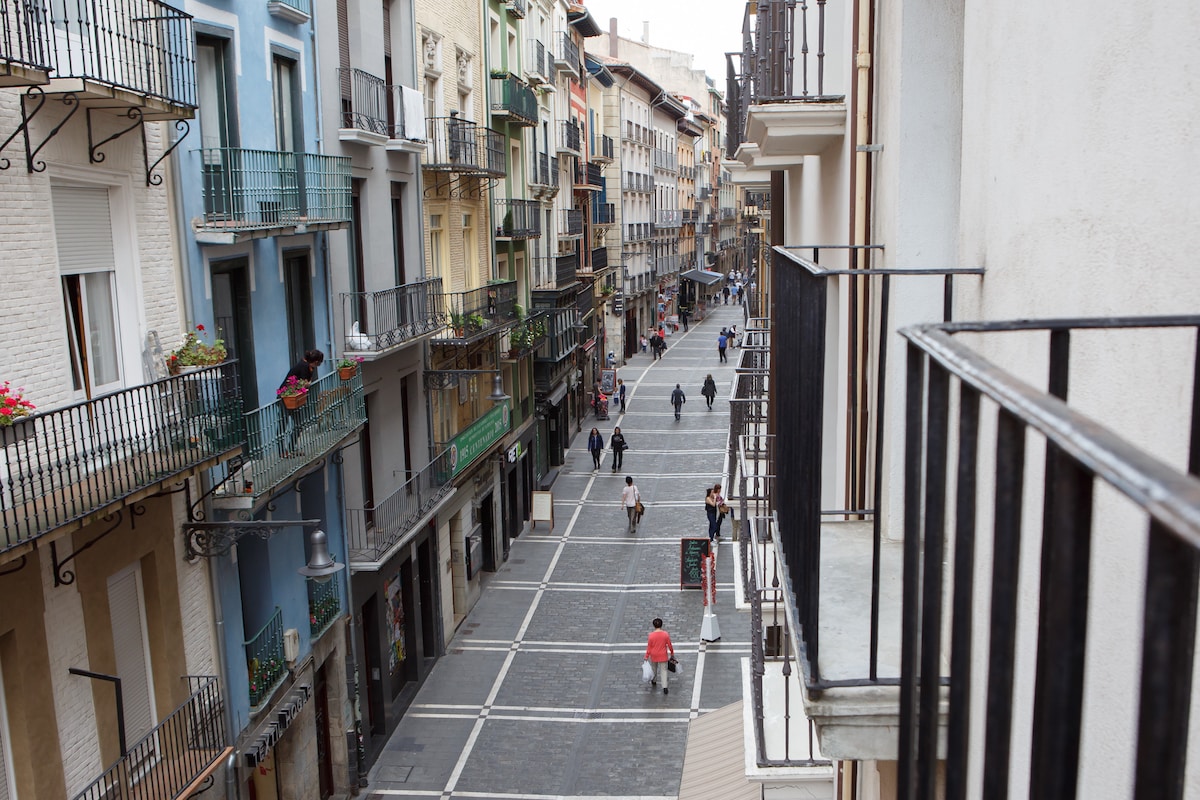 In the heart of the old town, just 30 meters from Pamplona City Hall and the Running of the Bulls route, in the center of the city's most famous festival. From the two balconies you'll enjoy the unique atmosphere of the old town. You'll be just steps from the city center, including Plaza del Castillo. Enjoy a peaceful stay away from noise and traffic, as both bedrooms overlook the courtyard. These will be unforgettable days. First floor, no elevator. UAT01598