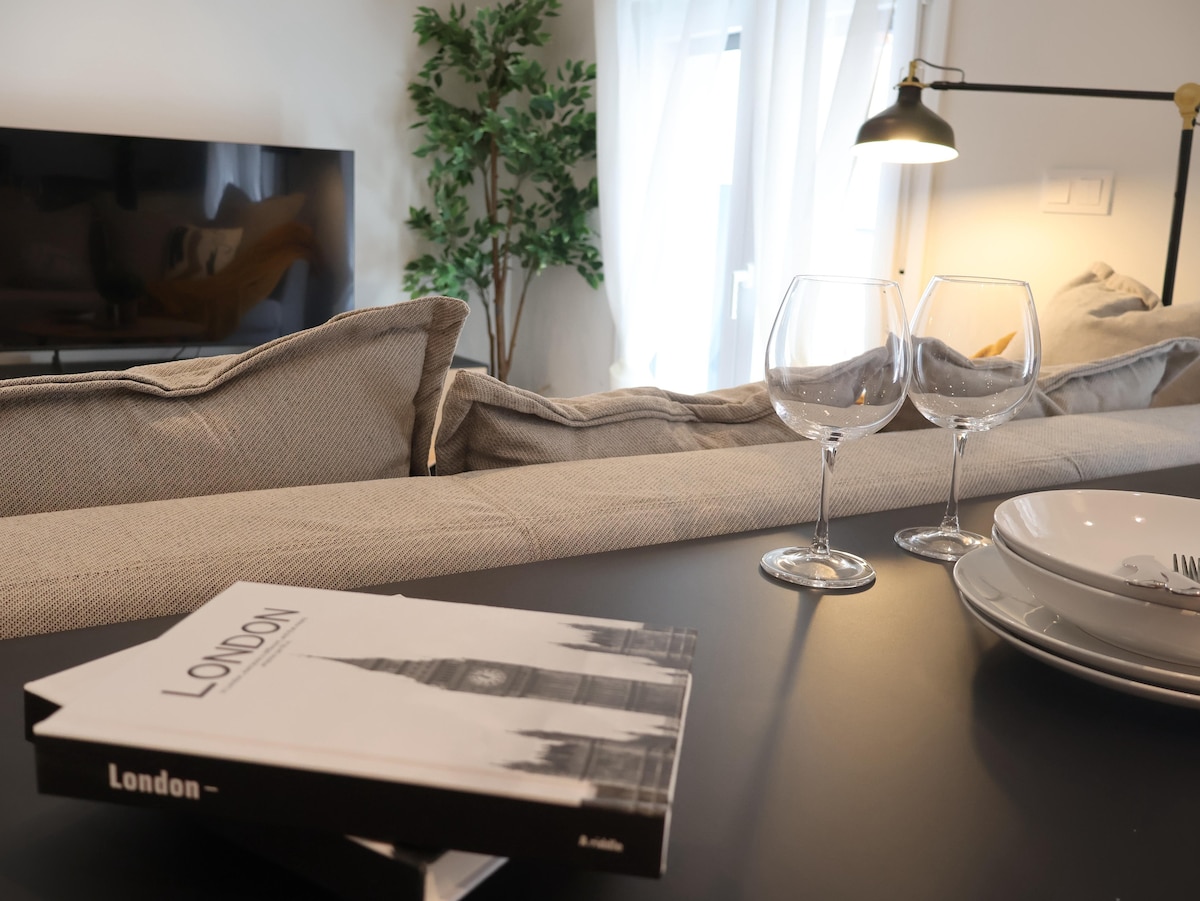 The apartment is brand new! A total renovation has been carried out with high quality materials! The living/dining room is equipped with designer furniture, has a Smart TV, air conditioning, balcony and gazebo. The fully equipped kitchen has a breakfast area and small terrace. All bedrooms have quality beds and complete wardrobes; They are exterior and have a balcony. The two bathrooms are equipped with eco-sustainable personal hygiene products: biodegradable and with low environmental impact.
