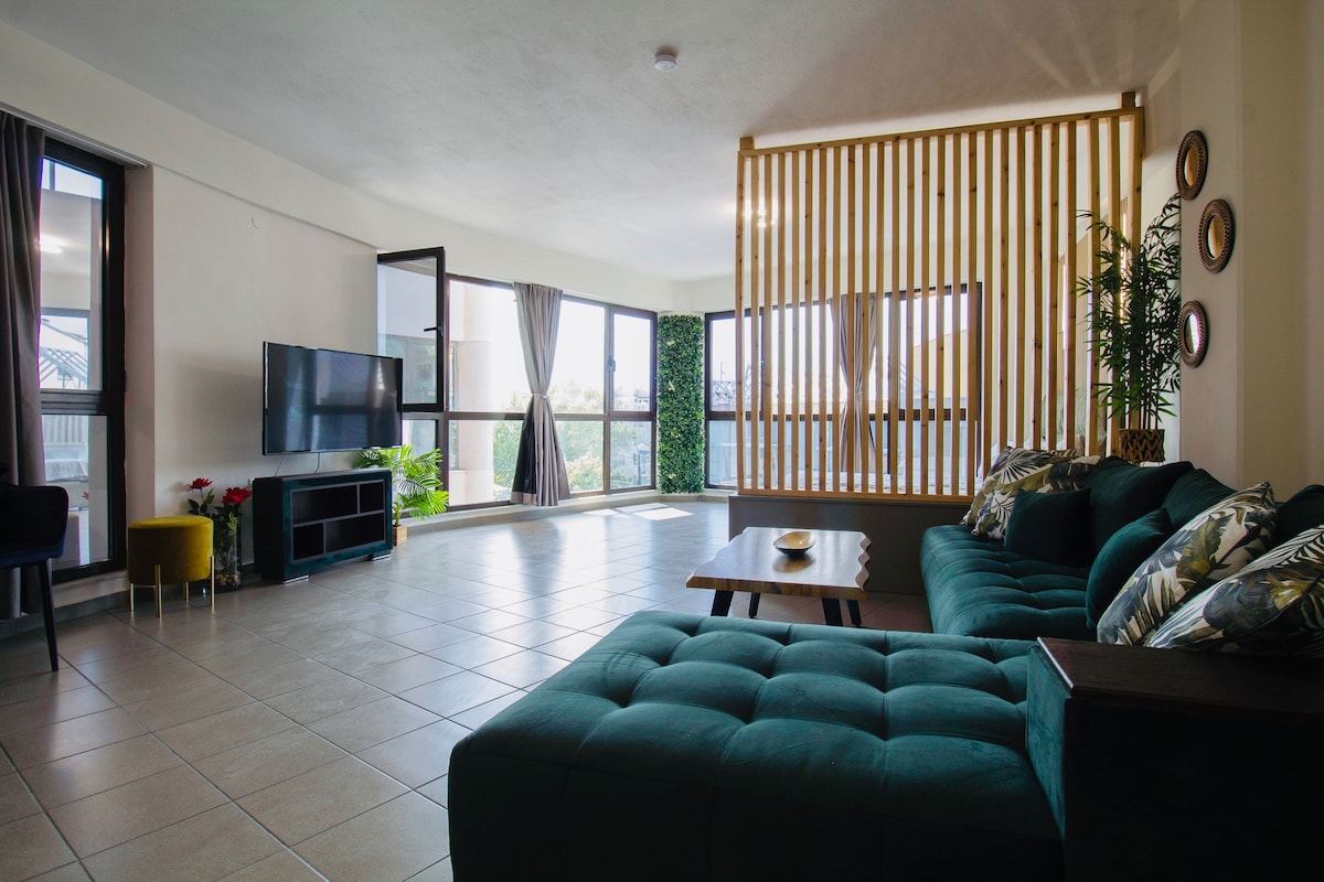 Просторен етаж с живописна гледка към планината и града. Разполагаме с една спалня с голямо удобно двойно легло, детска стая с две единични легла и обособено работно място, хол с камина, трапезария и функционална кухня, баня с хидромасажна вана, тераса с панорамна гледка. Подходящо за 4 човека.