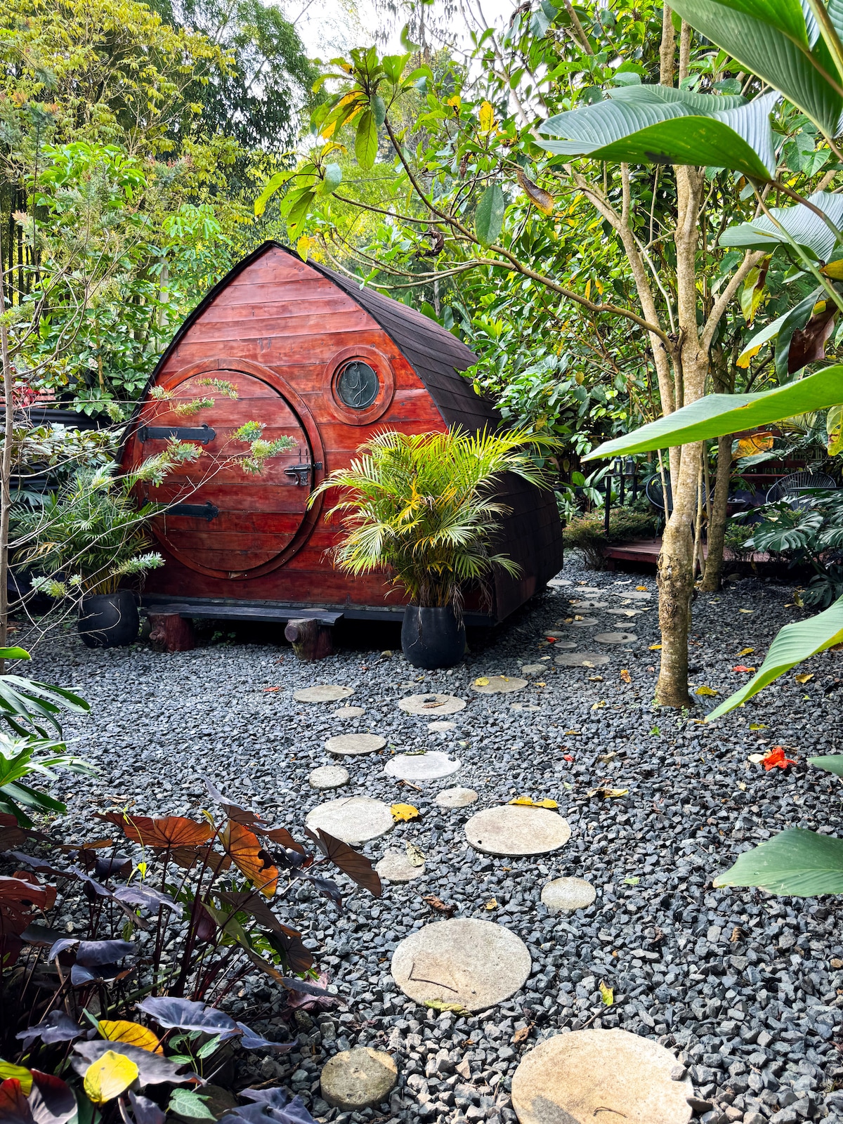 Glamorous Cabin & Cycladic grotto-type hot tub with privileged location in the heart of the coffee region. Hydrotherapy & Night light display, ecological trail, bird watching, butterflies, wildlife, panoramic view to the bamboo sea, sunrises and multicolor sunsets. - 22 minutes to Int. Airport - 20 minutes to Expofuturo - 22 minutes to Ukumari Zoo - 25 minutes to Cerritos del Mar Mall - 44-57 minutes to Filandia/Salento-Valle del Cocora - 55 minutes to Panaca - 1 hour to Parque del café