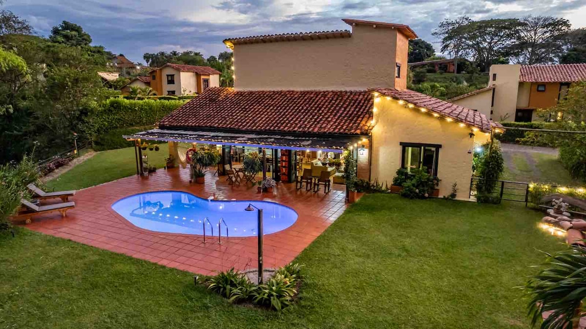 Discover tranquility in our new rural retreat near Armenia, immersed in the charm of the Coffee region of Colombia. If you are looking to get away from the hustle and bustle of the big cities, look no more. Your perfect getaway offers: 🛏️ King size bed in the Master room 🛁 4 full bathrooms 👨🍳Fully equipped kitchen 👙Relaxing heated jacuzzi 🃏Family room with games 💻 Office spaces with high speed internet 🌷Private community full of nature 🎢 Close to main attractions