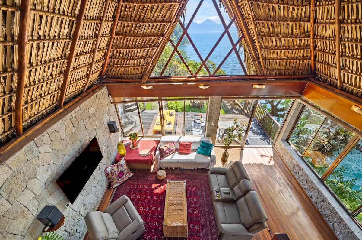 Villa Jade es un lugar que cuenta con una impresionante vista. La casa fue diseñada por el Arquitecto Arturo Paz, quien la diseñó para que puedas ver desde cualquier perspectiva el lago de Atitlán, también llamado el más lindo del mundo y tres hermosos volcanes Atitlán, Tolimán y San Pedro. El lugar es perfecto para tomar el sol, descansar, relajarse, caminar y pasar un tiempo grato en pareja, familia y amigos, donde podrás además disfrutar de espectaculares amaneceres y atardeceres.