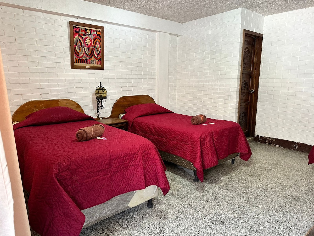 Hospédate en una amplia habitación con dos camas matrimoniales, ideal para 2 a 4 personas. Incluye desayuno gratuito en el rooftop con espectaculares vistas al lago y volcanes. Disfruta de atención 24 hrs, recepción dedicada y espacios modernos diseñados para tu comodidad. La habitación cuenta con cafetera con café y té, agua de cortesía, secadora y baño privado. Perfecta para familias o grupos que buscan confort y una experiencia única en Panajachel.