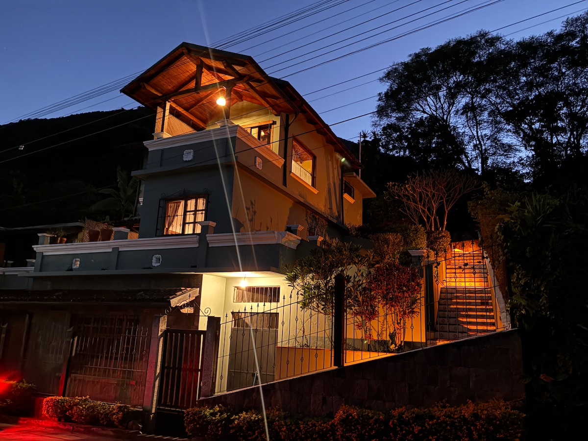 Boho-style villa located in the center of Panajachel for a relaxing experience, in a setting that perfectly matches the style of Atitlán. The villa is located within a beautiful floral garden located a few minutes walking from the famous Calle Santander. It has all the amenities needed for a pleasant stay, with family or friends. Capacity of 14 people with pets. Comfy and cozy, you will feel at home since you will not have to bring anything for your stay :).