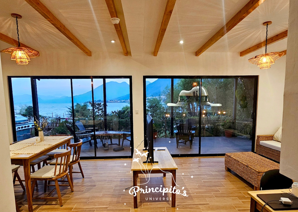 LAKEFRONT VIEW! IG: @Lakeviewontherocks “Lakeview on the Rocks is a spacious waterfront home in San Antonio Palopó with incredible views of the Atitlán and Tolimán volcanoes. Perfect for families and groups, the home offers direct lake access, kayaks, a private deck, and plenty of indoor/outdoor space to relax. Just 20 minutes from Panajachel, it’s an ideal spot for a peaceful and comfortable stay.” Volcano Views! 1 camera outside to deck/garden/lake.