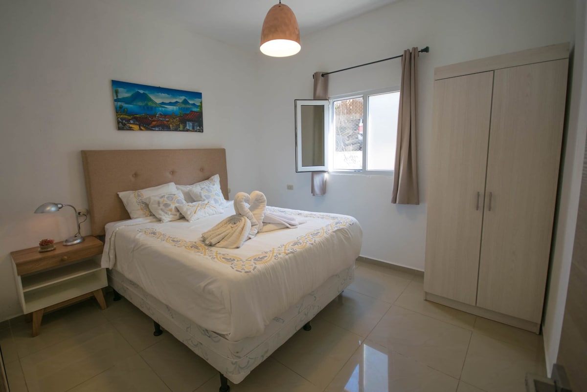 Boho-style villa located in the center of Panajachel for a relaxing experience, in a setting that perfectly matches the style of Atitlán. The villa is located within a beautiful floral garden located a few minutes walking from the famous Calle Santander. It has all the amenities needed for a pleasant stay, with family or friends. Capacity of 14 people with pets. Comfy and cozy, you will feel at home since you will not have to bring anything for your stay :)