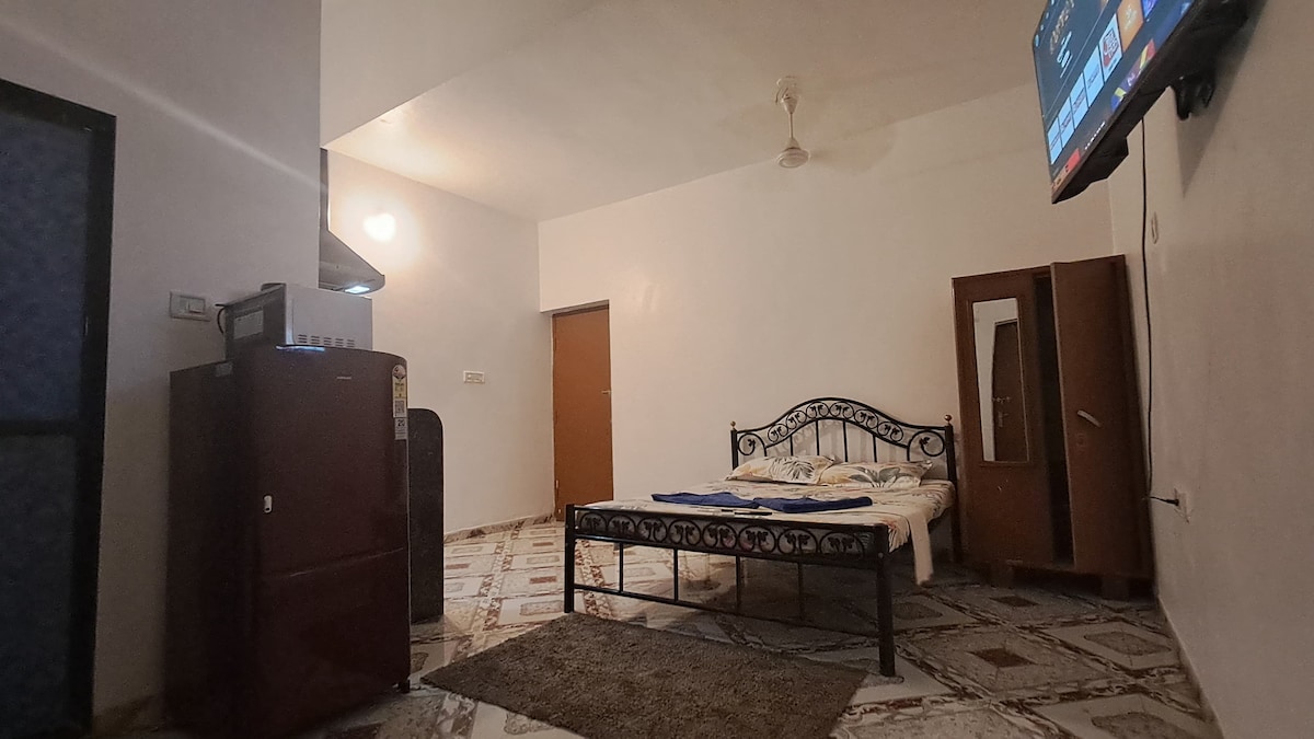 . 🌴 Sundowner: Your Serene Escape in Goa 🌅🍹 Stay in a massive 1BHK king size bed + sofa convertible bed , with Grand Balcony just minutes from Candolim Beach. With 2 AC’s, fast Wi-Fi, power backup, a stocked kitchen, balcony, and open parking, comfort meets boho charm. Shops, cafés, and nightlife are nearby for ultimate convenience. Check-in 12 PM, check-out 11 AM. IDs required, max 4 guests(₹500/hr for early/late) Note- Soaps and water bottles to be carried by guest.