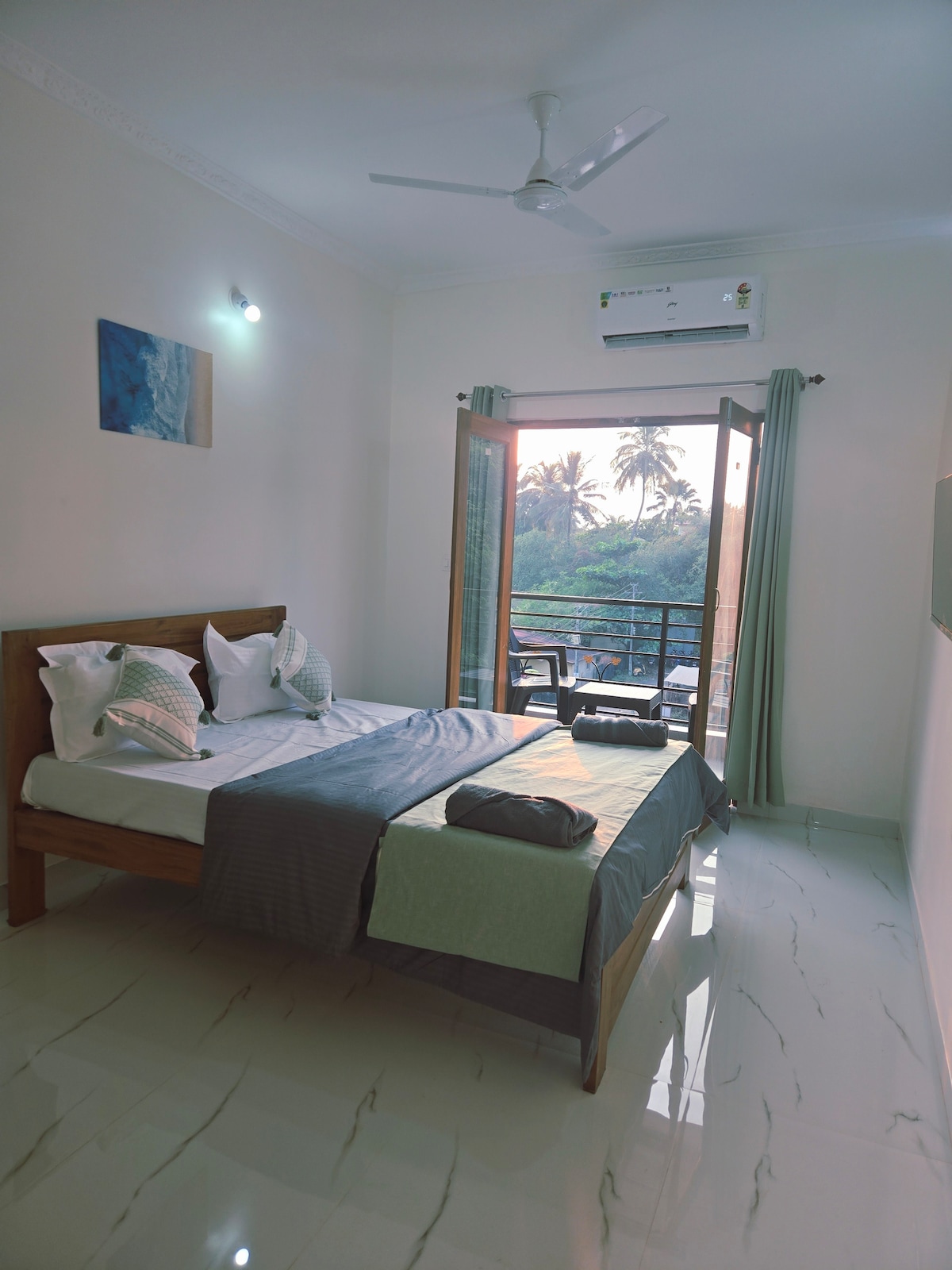 . 🌴 Sundowner: Your Serene Escape in Goa 🌅🍹 Stay in a massive 1BHK king size bed + sofa convertible bed , with Grand Balcony just minutes from Candolim Beach. With 2 AC’s, fast Wi-Fi, power backup, a stocked kitchen, balcony, and open parking, comfort meets boho charm. Shops, cafés, and nightlife are nearby for ultimate convenience. Check-in 12 PM, check-out 11 AM. IDs required, max 4 guests(₹500/hr for early/late) Note- Soaps and water bottles to be carried by guest.
