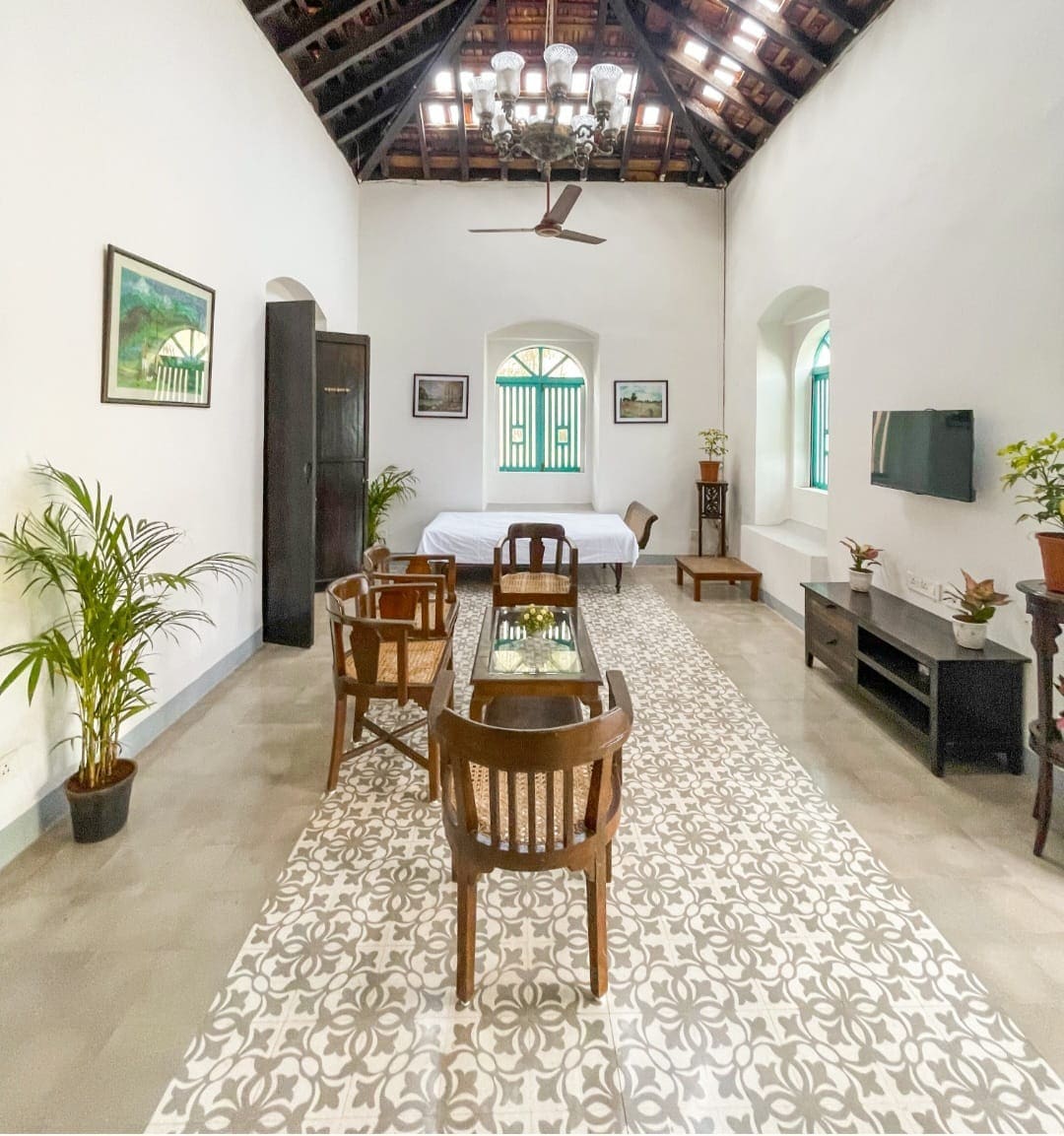 Cute & Cozy Riverside Studio in Siolim, Goa This charming yet spacious studio is centrally located in Siolim, right next to the river, and just a 13-minute drive to the sandy shores of Morjim Beach. Grocery stores and restaurants are only a 5-minute walk away for your daily needs. Popular spots like Thalassa, Kiki by the sea and other well-known party venues are only a 10-minute drive, making it perfect for guests who want to enjoy both calm mornings and lively evenings.