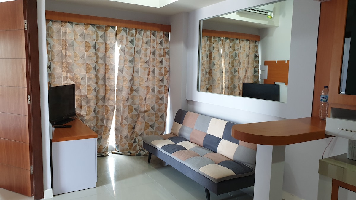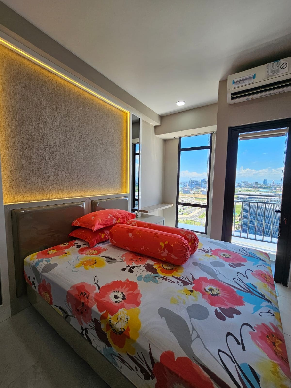 A 34 m² Spacious & Stylish Apartment with 1 King bed (180 x 200), 1 Single bed (100 x 200), and a sofa-bed that can accommodate family or a group of 4 to 5 people. Located on the 37th floor, this unit has direct view of the swimming pool and excellent view of the beautiful city of Makassar. The apartment building has 24-hour security, a communal area, a fitness center and multiple swimming pools. Relax, unwind and enjoy your stay.