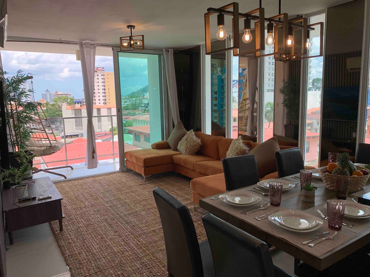 Comodidad, ubicación y Tranquilidad en alojamiento nuevo, en el centro financiero de Panamá, cerca a calle 50 y al emblemático edificio el tornillo. Todas las comodidades modernas, cerca de hoteles,casinos, restaurantes y con zona totalmente segura para caminar. Piscina y gimnasio en el último piso con espectacular vista a la ciudad. Fácil acceso : desde el Metro del aeropuerto o terminal terrestre se puede llegar a estación vía Argentina ubicada a 400 metros del departamento.