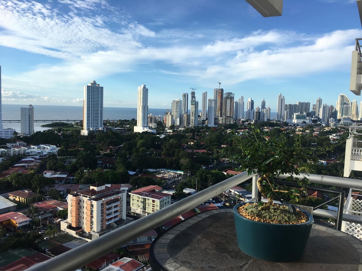 Apartamento contemporáneo, lujoso y único, que cuenta con una ubicación espectacular en uno de los edificios mas lujosos de la Ciudad de Panamá, con todas las comodidades de un hotel, cerca de supermercados, farmacias, restaurantes, centros comerciales y mas El indudable carácter, lujo y confort que este apartamento emana, hace que al finalizar la estadía sea realmente difícil irse. Con su envidiable vista al mar los huéspedes se pueden desconectar, relajarse y saborear este destino mágico