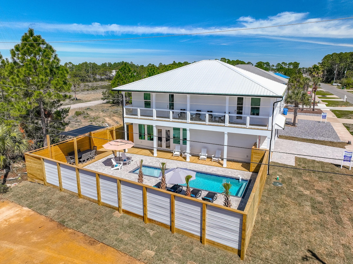 You’ll love this upscale beach retreat for its ample space, private heated pool, gorgeous outdoor shower, short walk to the beach, and blazing fast internet speeds! We're a five-minute walk to the beach, a five-minute drive to Camp Helen State Park, 8 minutes to Rosemary Beach & 30A and 10 minutes to Pier Park! Ask about our 6 seat golf cart available for rent for $125 per day! We are dog-friendly with payment of a $170 pet fee. Three dogs maximum.