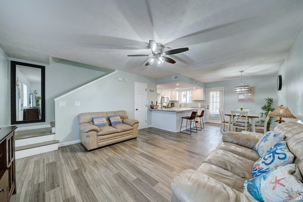 Welcome to our “No Wake Zone” Townhouse in Panama City Beach. Enjoy our spacious 2-Bedroom/2.5 Bath/2-story Townhome. We are nestled right in the middle of the best of what PCB has to offer. Literally as close to the beach as you can get (without being on the beach) - only 25-steps across a cul-de-sac to Public Beach Access #14 and #15 entries to the sugar sand and the Gulf of Mexico. In addition to the 2-Bedrooms, each with their own en suite… we have a queen sized pullout sofa.