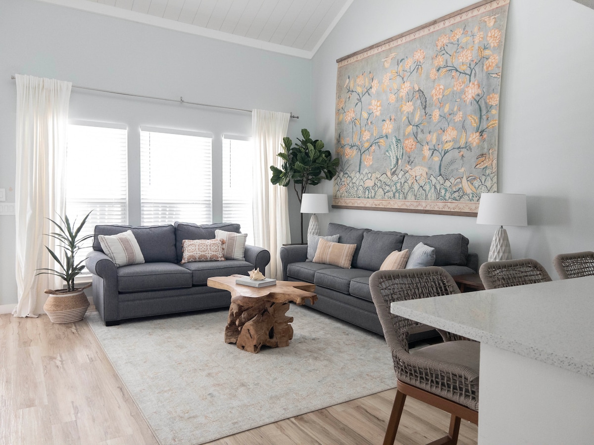日落梦幻•加大双人床•步行5分钟即可抵达海滩!