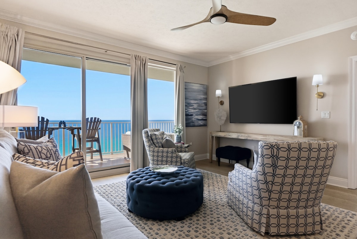🏝 BEST IN PCB 🏝 It doesn’t get much better than waking up to a stunning ocean view from your main bedroom and stepping right onto a private balcony overlooking the breathtaking sunrises over the Gulf. Start your day with a warm cup of coffee as you take in the serene beauty of the emerald waters. In the evening, unwind with a glass of wine while watching dolphins gracefully swim by. Step directly onto the sugar-white sandy beach, unfold your chairs, and soak up the Florida sun. Perfect getaway
