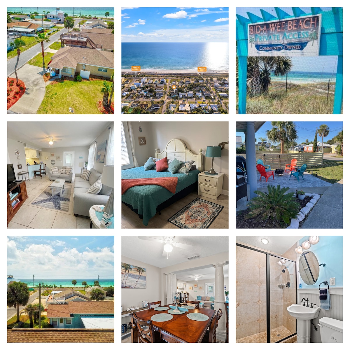 Location, Location, Location!!! 50K worth of newly updated Interior Design!!! This unique home is perfect for large family getaways while affording single family vacationers' complete privacy. Welcome to Blue House that sits directly across the street from one of the world's most gorgeous beaches (Laguna Beach). You can walk to the beach (quiet west end of Panama City Beach) in less than one minute utilizing either of the 2 boardwalk access points 79 or 80 across the street.