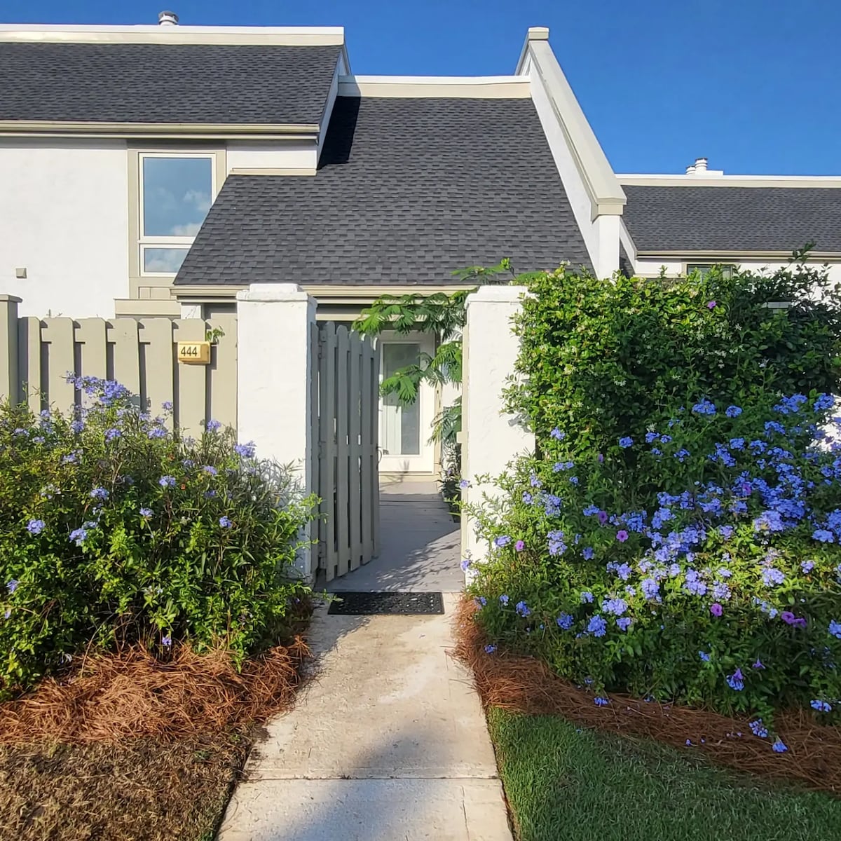 Welcome to our personal Vacation home. You will experience a Simple Clean step less ranch (Unit B right side) is 1000sq.ft with no time wasted on exhausting steps, long elevator rides or lines sitting in traffic. Super Clean & Easy Self-Check In and out. Located in a neighborhood on the east end of warm Panama City Beach FL that has a rich tropical coolness you’ll enjoy and love! Embrace the clean and warm spa like energy that will absolutely charm you. *Ocean Marinas 15 minute walk to beach