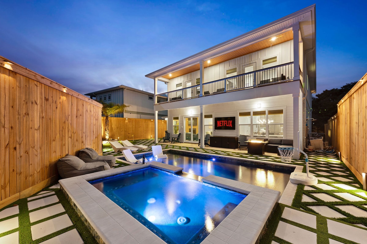 私人温水泳池,游乐场,距离海滩 1 个街区