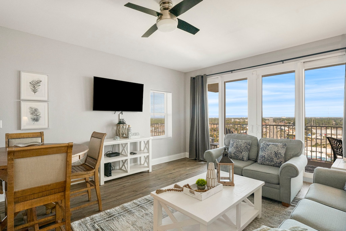 Welcome to your dream coastal retreat! This newly renovated penthouse condo offers stunning panoramic views of the Gulf of Mexico from the living room, kitchen, and master bedroom. With space to comfortably sleep 10, this condo provides the perfect blend of luxury and relaxation. Located in the sought-after Laketown Wharf, you'll enjoy resort-style living with five unique pools, on-site shops and restaurants, and a 52,000 sq ft lakefront boardwalk. Just steps away from the beach.