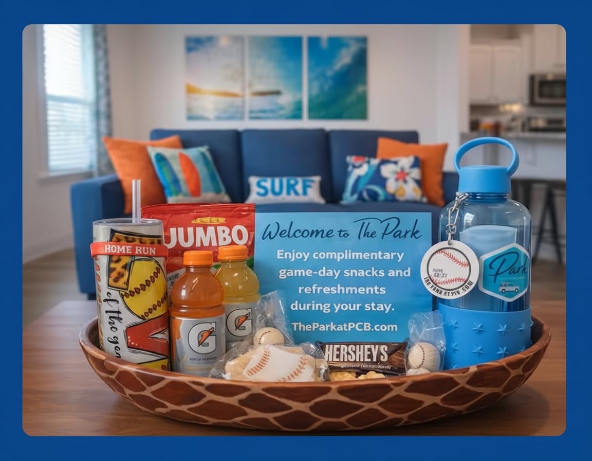 La Brisa: ✔Private Hot Tub ✔4-min walk to beach & restaurants ✔1 king, 2 queens, a pull-out ✔Cozy living room & reading nook ✔Full kitchen ✔1.5 baths ✔Kids' game closet ✔Outdoor shower ✔Beach essentials, cooler, wagon, towels, & games ✔Patio: hammock+fire table+grill ✔Laundry ✔Dedicated workspace ✔Wi-Fi & smart TVs ✔Heat & AC ✔Two parking spots Runaway Island, Hidden Lagoon & Arcade short walk Swampy Jack's Park 1.2 mi Margaritaville 1.4 mi Legacy Golf Club 1.6 mi Pier Park & Dog Beach 2.1 mi