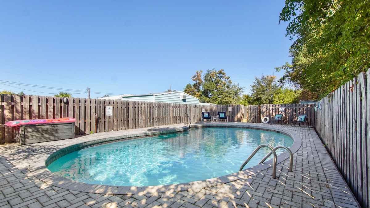 - POOL home! (Heated) - Located in Historic St. Andrews - GAME ROOM - Walking distance to amazing restaurants, bars, and locally owned shops! - Equipped with all of the essentials - 15 minutes to the closest public beach access and St. Andrews state park. - Full size kitchen - 2 bathrooms - Spacious outdoor space - Fenced-in yard - Driveway can fit an RV or up to 5 cars. - SLEEPS 8 Downtown * Hustle and bustle * NOISE CAN BE PRESENT