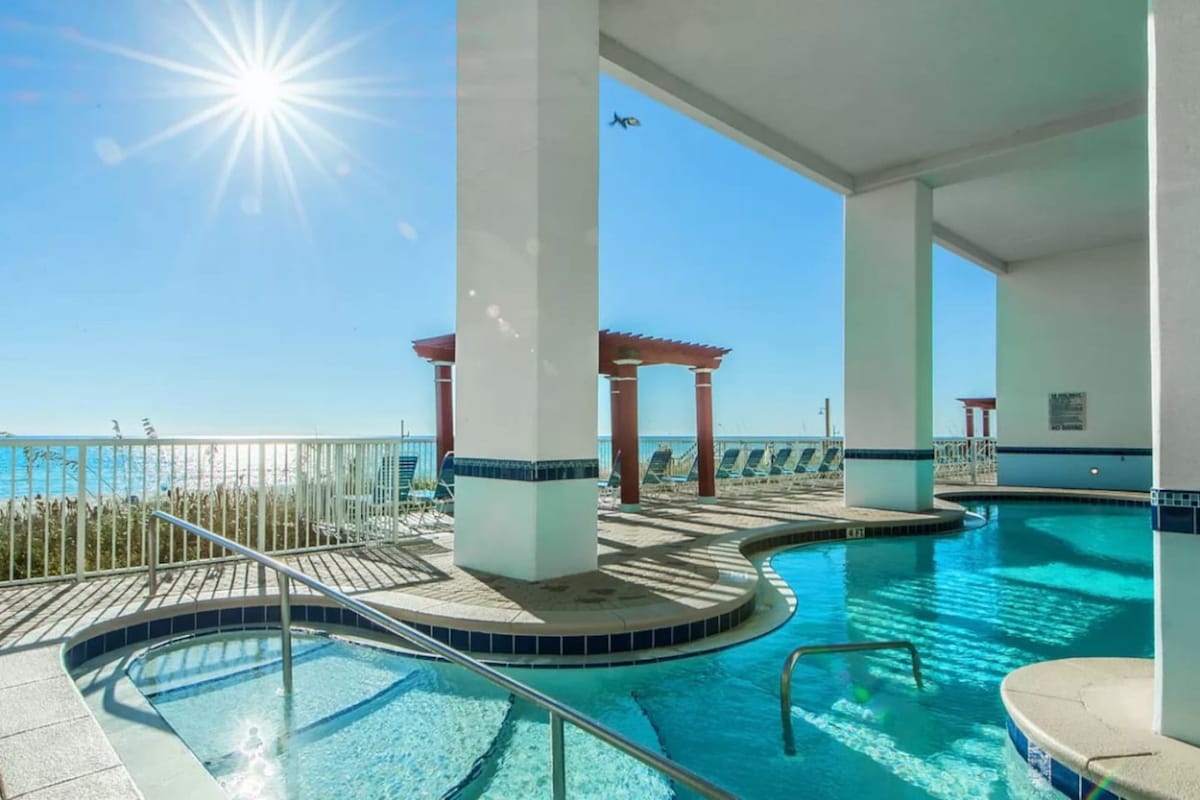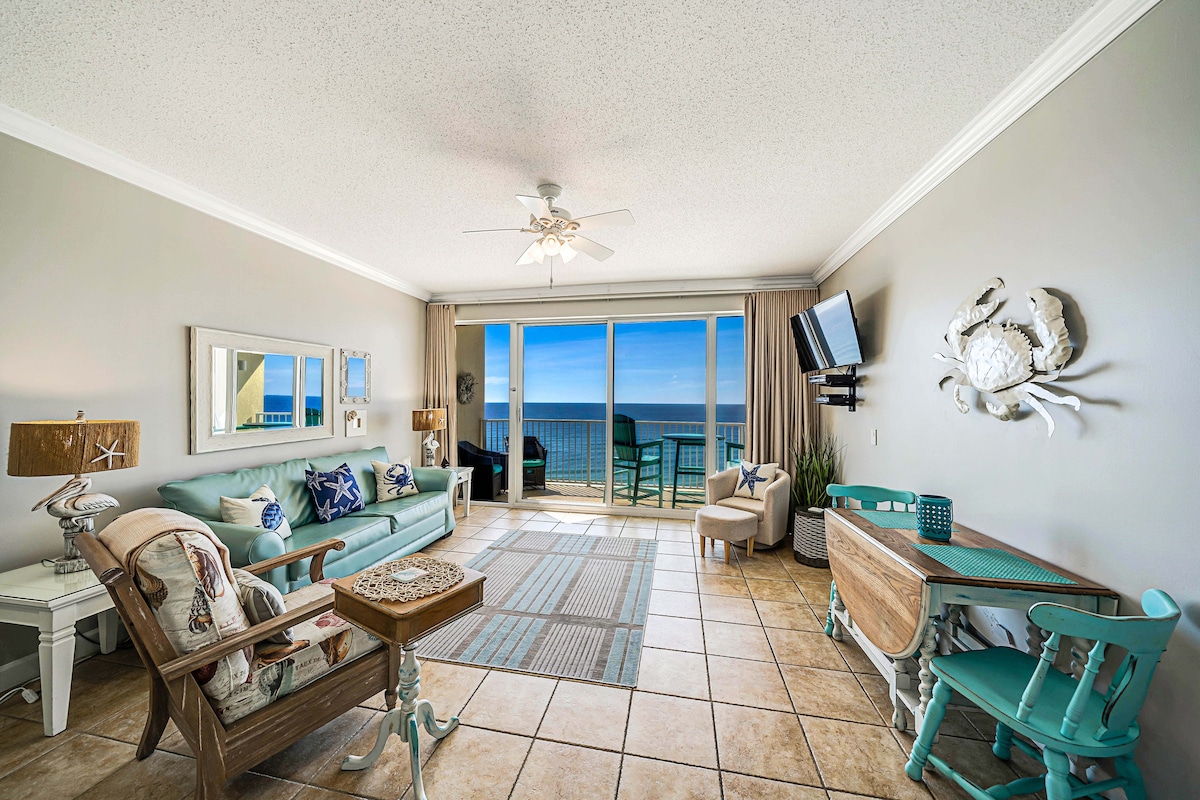 FREE BEACH CHAIRS/ UMBRELLA INCLUDED MARCH through OCTOBER!!! This beach front 1 bedroom 2 bath condo is beautifully remodeled with plenty of space for couples & small families wanting some relaxation and FUN in the SUN IN PCB, FL! Enjoy the private Gulf front balcony, where breathtaking views of the beach and Gulf are on full display! Look out over the seasonally heated East side pool straight to the sugar white sand and turquoise water!