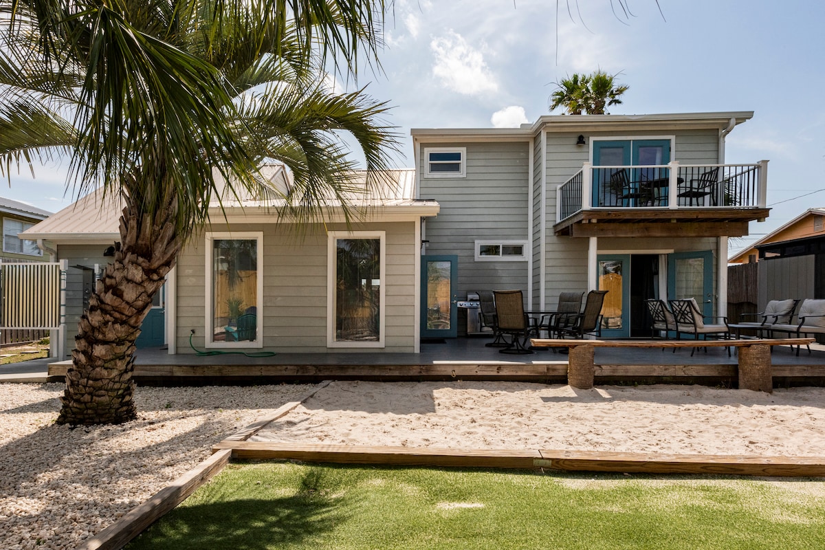 ☀ 5 min easy walk to beach ☀ Walk to restaurants, fast food, stores ☀ Dogs welcome with pet fee ☀ Centrally located and quiet neighborhood ☀ Minutes to Pier Park and and Frank Brown Park ☀ Fenced yard with hot tub, fire pit, picnic area, cornhole Perfect for snowbirds, families, couples or small groups who want plenty to do after spending their day at the beach Sleeps 6: Bedroom 1: King + Twin-Size Trundle Bed (pull out) + En Suite Bath Bedroom 2: Queen Living Room: Twin-Size Pull-Out Chair
