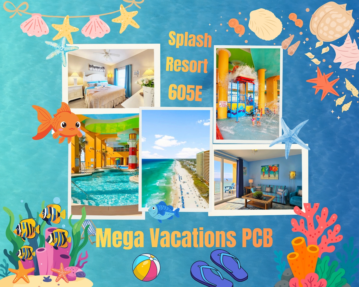 Welcome to the World's Most Beautiful Beaches and Top Vacation Destinations in USA - Panama City Beach, FL! Our unit is located at Unique & The Best Family Beachfront Resort - Splash! Aqua Park, Heated Pools, Lazy River, Hot Tub, Frog pad, Gym, Beach services & more complementary come with our 605E unit! Our elegant condo accommodates up to 6 guests. We have fully equipped kitchen, Big TVs, Fireplace+Crib+Beach Toys & more! The entire family can enjoy amazing views from the Gulf front balcony!