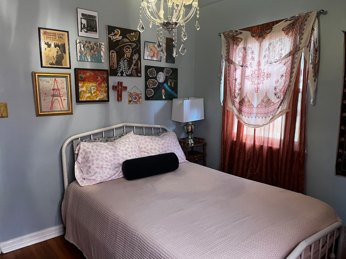 Charming private Garden Cottage behind a 1910 Victorian farmhouse on ½ acre. Own entrance + parking. Option for electric vehicle charging and boat parking. Professionally designed studio w/ queen bed, pull-out sofa, full kitchen, walk-in shower, fast Wi-Fi, smart TV & AC. Walk 5 min to downtown Lynn Haven: parks, bay beach, boat ramp, grocery, coffee shop & restaurants. Only 25 min to world-class Gulf beaches. Perfect peaceful getaway for couples solo travelers or families!