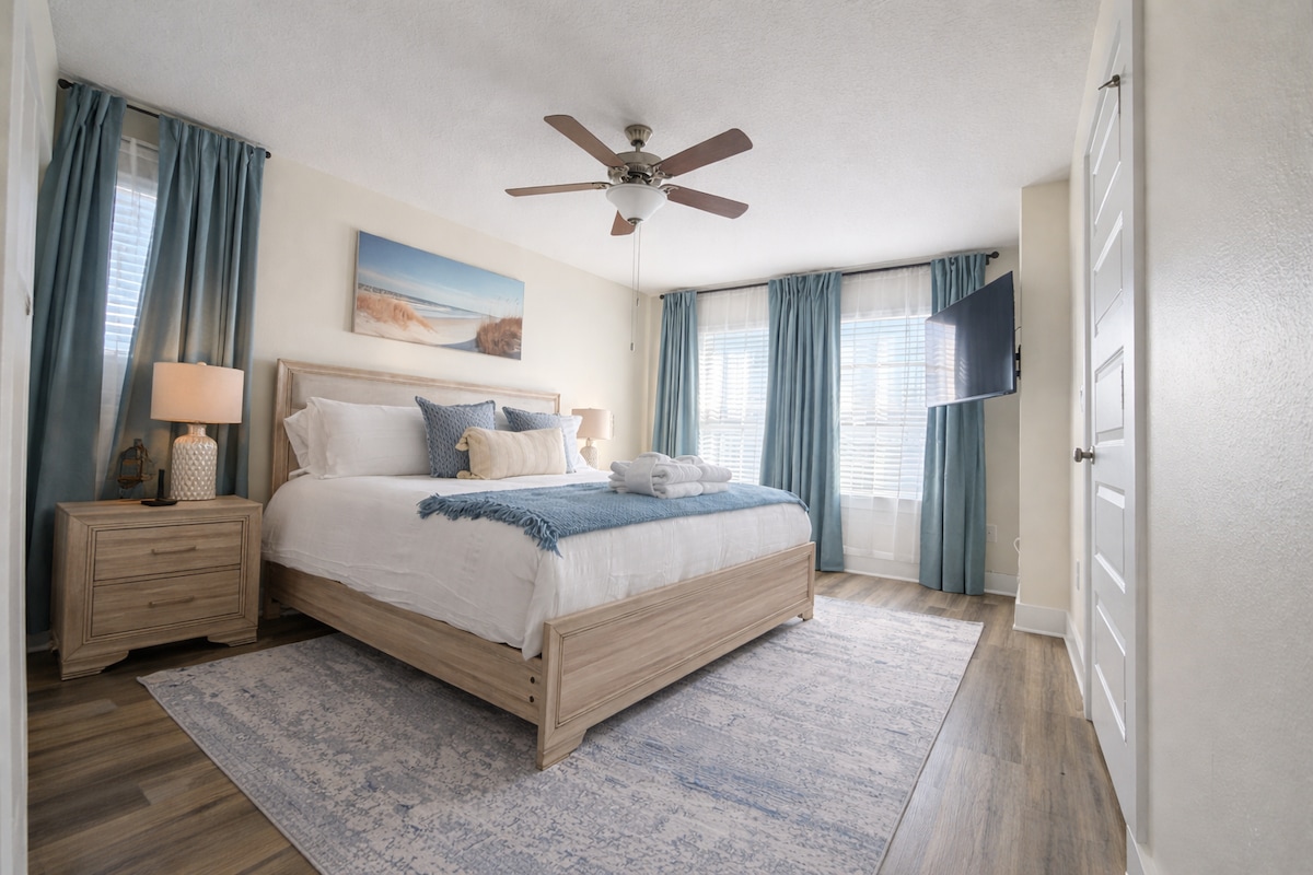 Relax and enjoy your vacation days with your loved ones at this beautifully decorated, freshly remodeled house in a quiet neighborhood at the end of the street. Awake rested & refreshed in our top of the line beds along with ultra soft and comfortable bedding. The cozy & private master bedroom features king size bed with a premier purple mattress as well as a private exit through the master bathroom onto the screened in back patio. The furnished serene patio is also a perfect place to unwind.