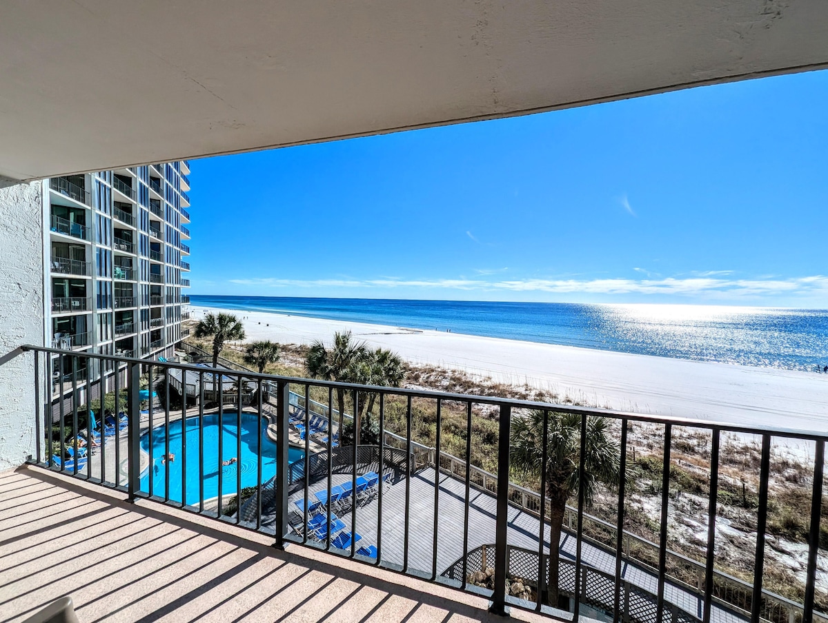 DIRECT GULF VIEWS - LARGEST BALCONY - BEACHFRONT ~ BEACH CHAIRS and TOWELS PROVIDED ~ SUPERIOR SERVICE Low floor - easy access to stairs and elevators Welcome to “EMERALD VIEW”- Sterling Reef 105, 2bed & 2bath with unobstructed emerald water view. Plus, all the comforts of home! Once you arrive at “Emerald View”, you'll be happy to relax with the best view from your large outdoor living room & dining space! You’ll also enjoy the direct beach access and all of the resort amenities provided