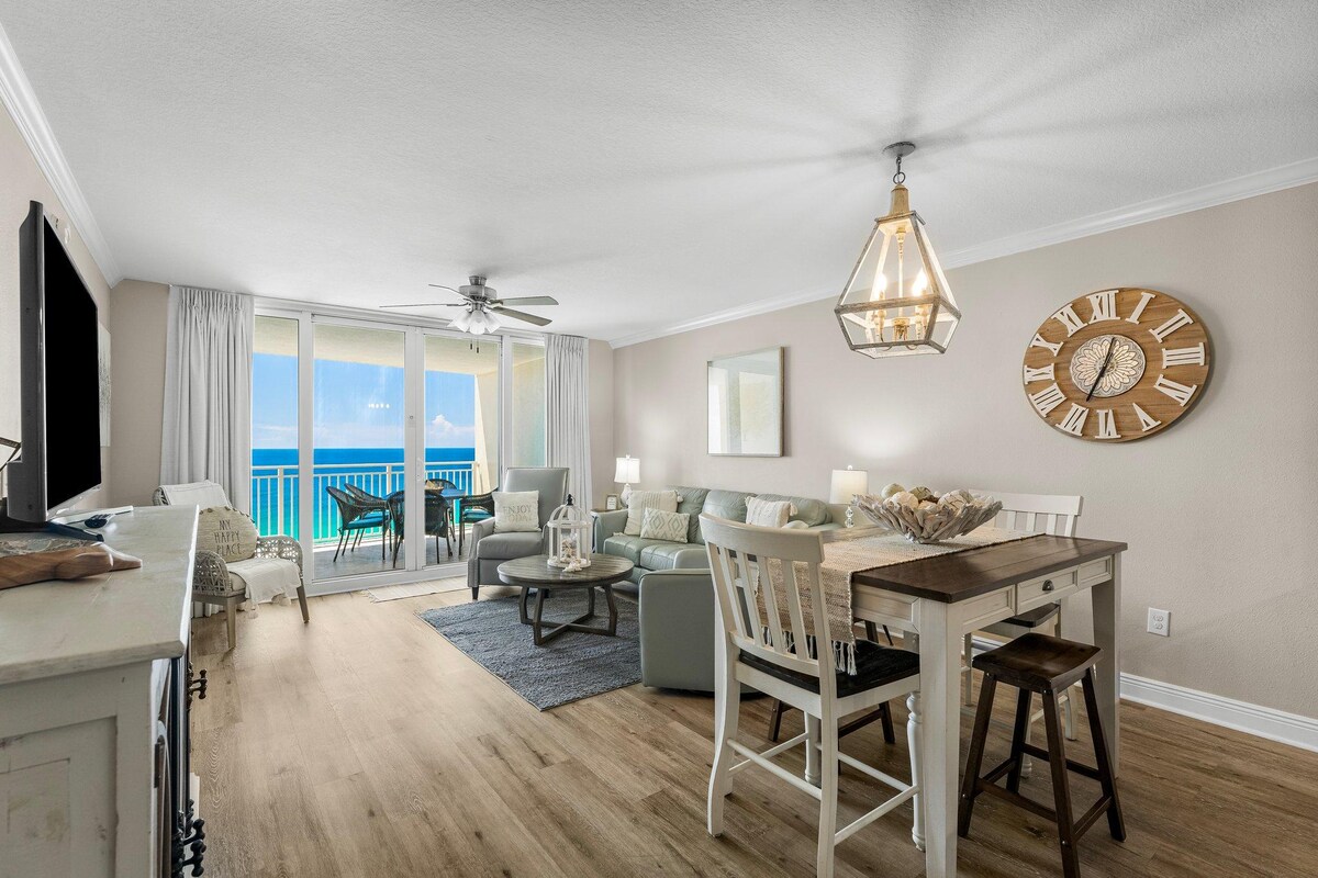 BeachView Paradise is a beautiful 1 bedroom/1 bathroom BEACHFRONT corner penthouse condo located at Tidewater Beach Resort on the 27th floor with jaw dropping views. Recently renovated down to the studs, it was curated with thoughtful design and high end finishes. A quick elevator ride down and you are right at the pools or the beach. All of this in a beachfront resort full of amenities and a quick walk to Pier Park loaded with restaurants, shopping and family fun. Take a look!