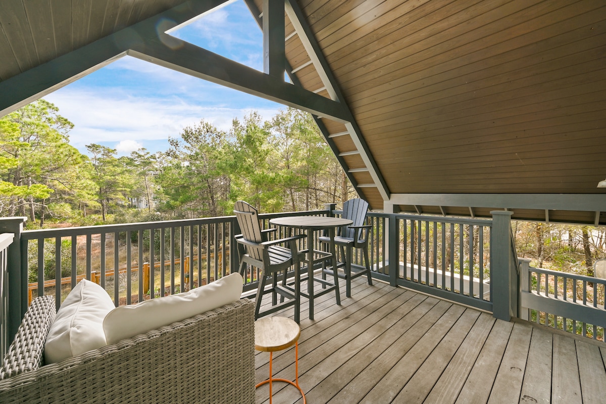 Our carriage house is across the street from the beach and on a private dead-end road in Seagrove. Public beach access is a 5-minute walk. We live in the main house and renovated our carriage house for guests to enjoy our secluded yet convenient location. Your balcony enjoys views of the Pt. Washington State Forest. You have a private entrance, full kitchen, separate bedroom with a king bed, modern bathroom, and 2 cruiser bikes. This is the perfect couple's escape with luxurious accommodations.