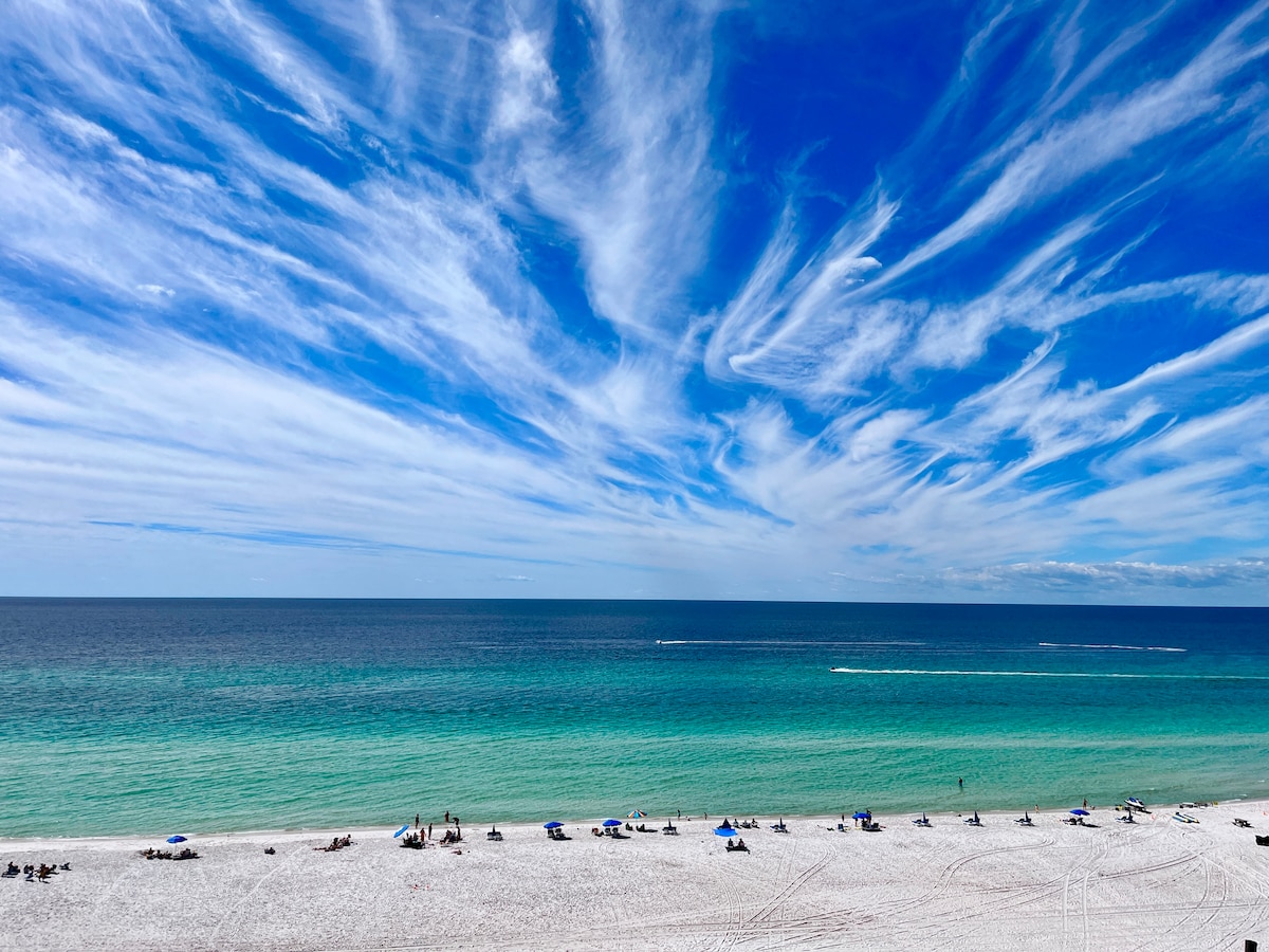 Boasting infinite Gulf views, an open floorplan, and elegant touches throughout, this deluxe, beachfront condo is guaranteed to please even the most discerning guests. The great room boasts a fantastic, full kitchen with stainless steel appliances and counter seating for three. Enjoy more formal meals together at the indoor table for six or al fresco on your furnished balcony. The cozy, sunlit living area includes a gas fireplace and a wall-mounted, flatscreen TV, while the sliding glass doors open the entire space up to the balcony. And for sleeping arrangements, this condo features three comfortable bedrooms including a "mermaid-friendly" kids' room. Guests will also enjoy access to a variety of on-site amenities including a fitness room, a seasonally-heated pool, and a hot tub.
