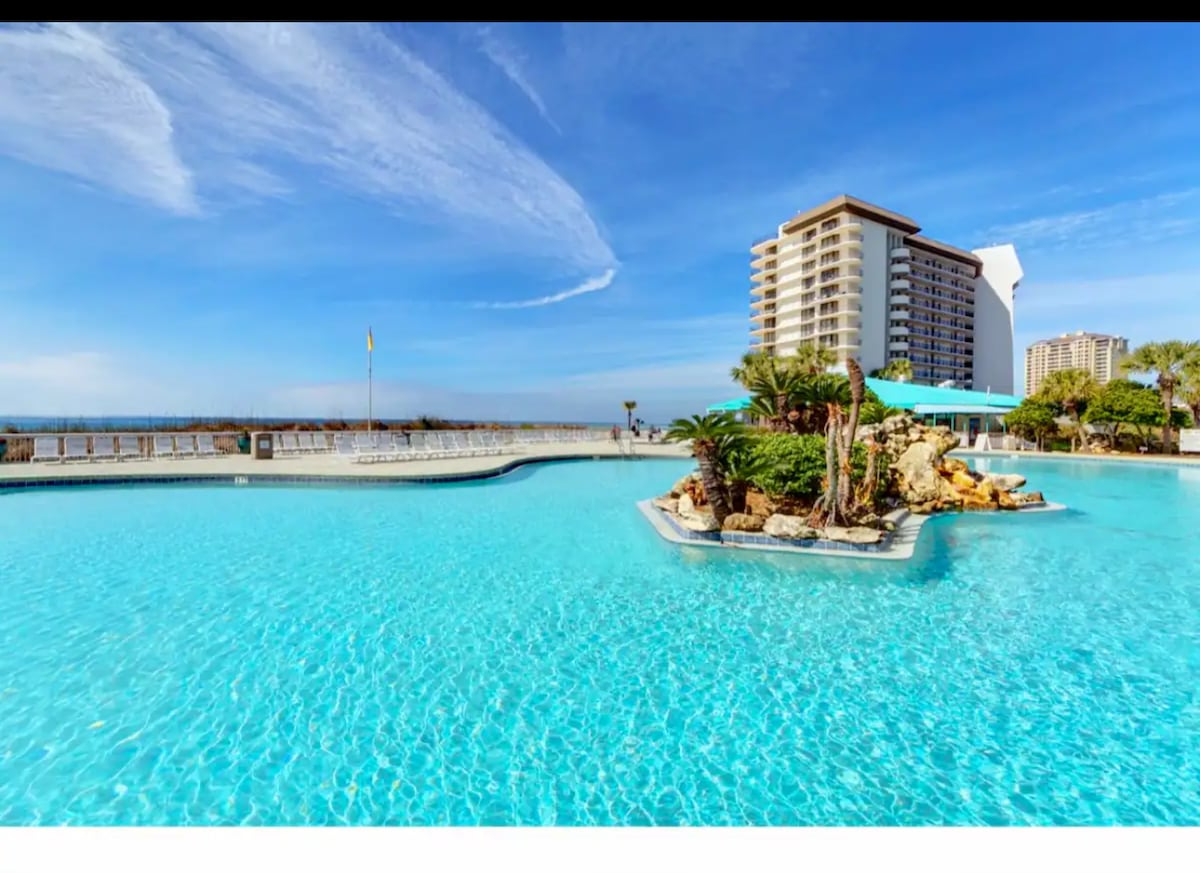 Edgewater Resort amenities are the best in PCB and include a Huge Lagoon Pool with Rock Waterfall, 10 pools and 4 Hot Tubs, a 9 Hole Par 3 Golf Course, 11 Tennis Courts, Shuffleboard, Pickleball, Basketball, Spa and Fitness Facility. A walking bridge gives direct beach access, plus golf carts drive around offering rides throughout the warmer seasons. You won't find a better place on the beach!