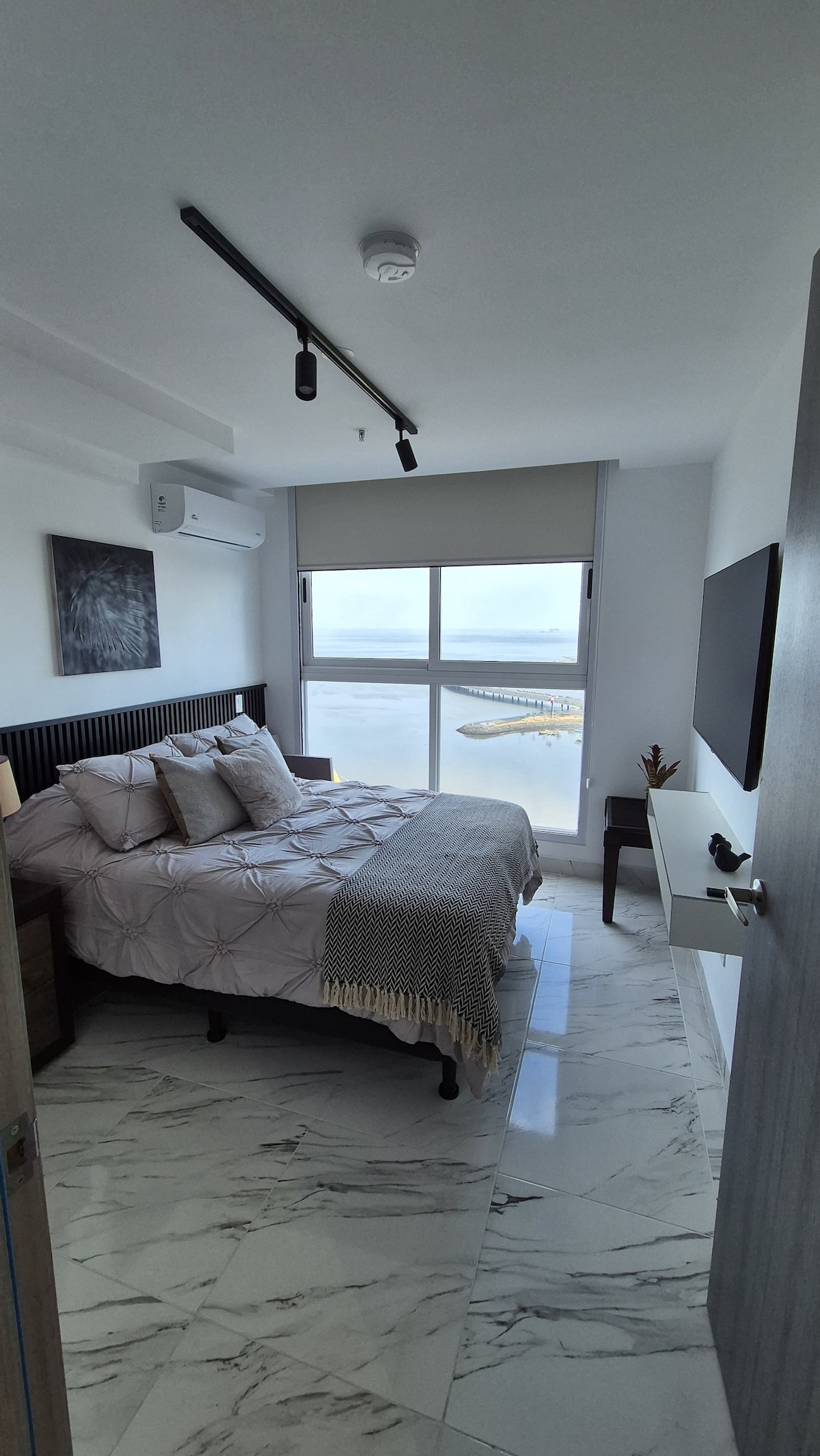 Moderno apartamento de lujo en la Cinta Costera, ideal para ejecutivos, parejas o familias. Dormitorio amplio con vista al mar, baño privado, cocina y electrodomésticos. Diseño elegante con seguridad 24/7, gimnasio, piscinas, 4 restaurantes, bar y Sky Lounge. Ubicación privilegiada cerca de supermercados y excelente oferta gastronómica en Ciudad de Panamá. PANAMA